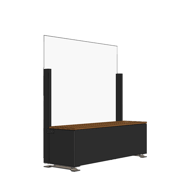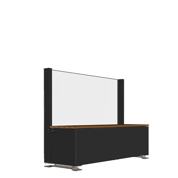 Hög fast vindskärm som fristående sektion genom att kombinera CiUWindscreen med blomlåda eller bänk.